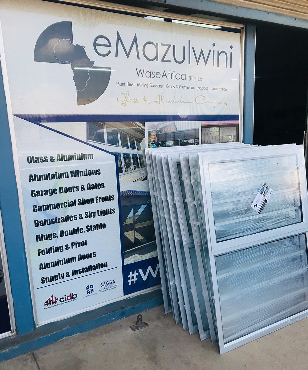 eMazulwini WaseAfrica Mining and Construction is a premium and highly experienced glass, aluminium, balustrades, skylights and shower manufacturer, distributor and wholesaler. We are a Level 1 BBBEE Black Youth-owned entity with over 20 years experience between the two Directors.